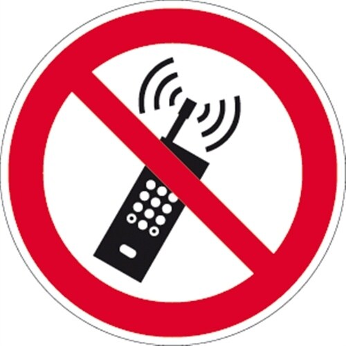 Aufkleber Eingeschaltete Mobiltelefone verboten ISO 7010, Folie, Ø 200 mm