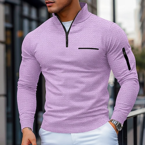 Per uomo Magliette Polo a Nido d'Ape Testurizzato Sport Outdoor Abbigliamento quotidiano Zip a un quarto Manica Lunga Moda Confortevole Blocco di colori Con zip Tasca Primavera Autunno