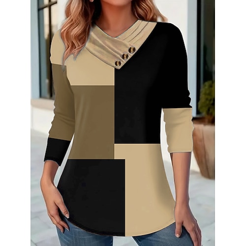 Per donna Maglietta Grafico Geometrico Blocco di colori Vintage Elegante Casual Manica Lunga Scollo a V Top Regolari Quotidiano Weekend Bottoni Stampato Blu Viola Verde Cachi Autunno Inverno