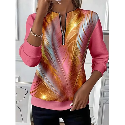 Per donna Felpa Pullover Felpe con cerniera Geometrico Blocco di colori Moda Casual Manica Lunga Girocollo Top Regolari Streetwear Abbigliamento Quotidiano Casuale Con zip Patchwork Rosa chiaro Verde
