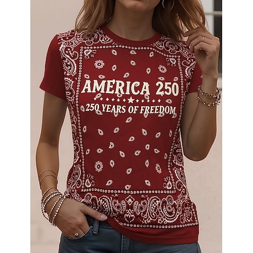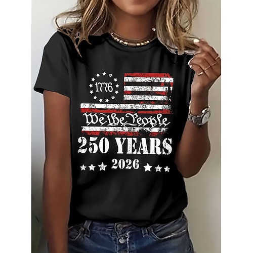 Maglietta Patriottica Giorno dell'Indipendenza Americana 250° Anniversario per Donne T-Shirt Grafica Bandiera Vintage Elegante Classica Maniche Corte Collo Giro Collo a V Collo Rotondo Stampa
