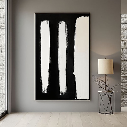 dipinto a olio minimalista su tela, dipinto astratto in bianco e nero fatto a mano, arte moderna per soggiorno o ufficio