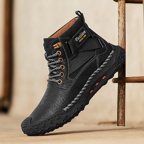 Per uomo Stivali Retrò Taglie Forti Camminata Casual Quotidiano Pelle PU Confortevole Stivali alti Allacciatura Rosso marrone Nero Bianco