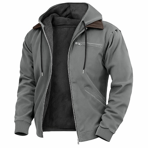 Per uomo Felpa con cappuccio Felpa con cappuccio a zip intera Felpa con cappuccio in pile Felpa con cappuccio foderata in pile Blu Marrone Verde Grigio Con Cappuccio Semplice Patchwork Blocco di