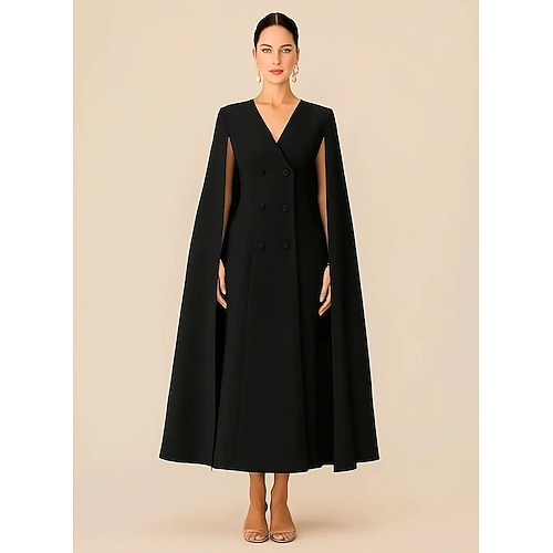 Abito da smoking Linea ad A Formale Ospite di nozze Raso Elegante Minimalista Manica 3/4 Lunghezza Tè Bavero Doppiopetto