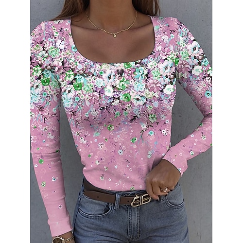 Maglietta da donna a manica lunga a coste Grafica Collo Quadrato Maglietta a manica lunga Casual Ombre Astratta Vintage Elegante Classica Top Regolari Quotidiana Stampa Blu Viola Oro Verde Primavera