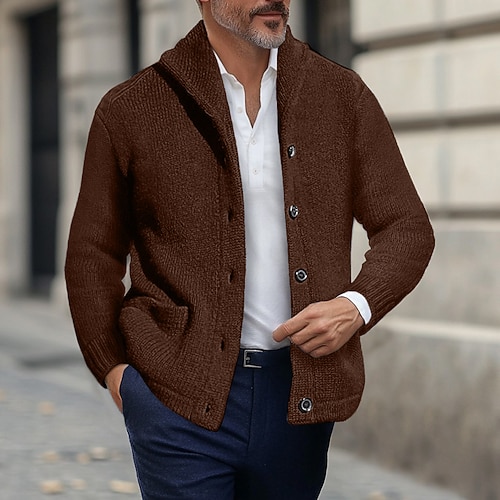 Per uomo Felpa Maglione elegante Cardigan A Coste Treccia Maglia Top Regolari Lavorato a maglia Semplice Collo a scialle Vacanza Moda Casuale Abbigliamento quotidiano Abbigliamento Primavera Autunno