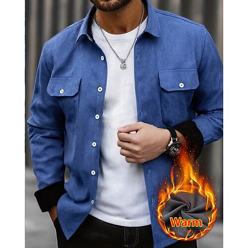 Per uomo Camicia in pile Camicia di Velluto a Coste Camicia con Bottoni Camicia cargo Sopracamicia Casuale Quotidiano Blu Rosso Verde Cachi Manica Lunga Collo ripiegato Primavera Autunno