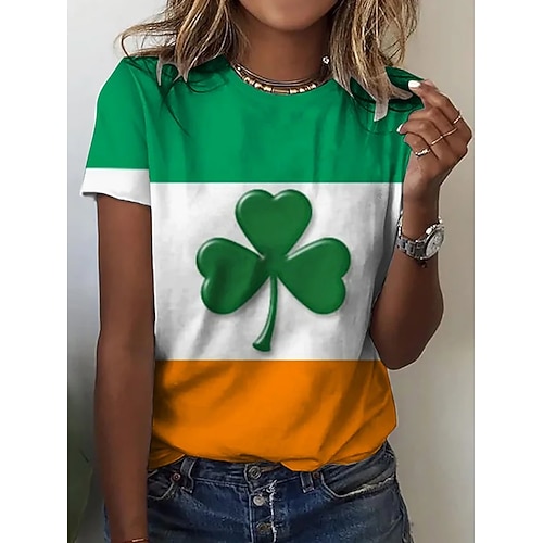 T-Shirt Donna per il Giorno di San Patrizio con Grafica Geometrica Trefoil Stilosa Classica Casual Manica Corta Collo Rotondo Top Regolari Stampa Giornaliera Bianco Arancione Verde Estate Primavera