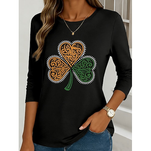 T-shirt da donna di San Patrizio grafica shamrock moda elegante classico maniche lunghe scollo tondo top regolare stampa giornaliera weekend nero bianco giallo verde estate primavera autunno
