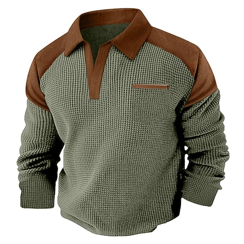 Per uomo Maglietta Waffle Manica Lunga Scollo a V Bavero Autunno Primavera Autunno Tinta unica Moda Essenziale Casual Blocco di colore Casuale Streetwear Sportivo Nero Blu marino Kaki Maglietta Top