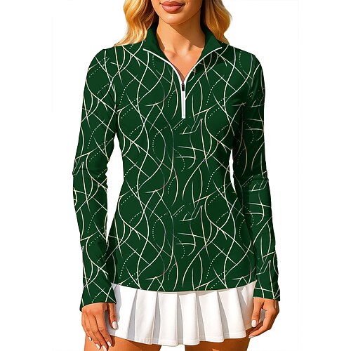 Per donna Geometrico Arte astratta Felpa Polo Top Maglietta Maglietta sportiva Manica Lunga Stampato Zip a un quarto Pullover UPF50 Resistente ai Raggi UV Protezione UV Elastico Traspirante