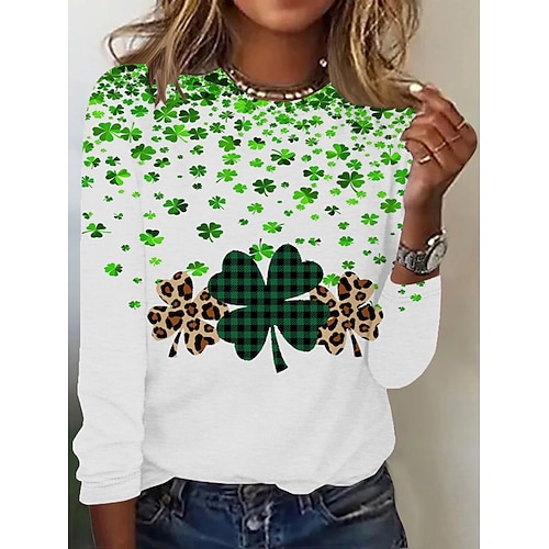 T-shirt da donna per il giorno di San Patrizio con grafica trifoglio moda elegante classica a maniche lunghe colletto regolare girocollo top quotidiani stampa bianca verde estate primavera autunno