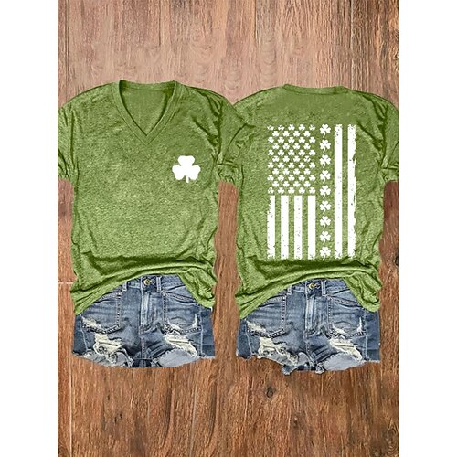 Maglietta da donna per il giorno di San Patrizio grafica Shamrock vintage elegante classica maniche corte scollo a V top regolari stampa quotidiana nera bianca verde grigio scuro estate primavera