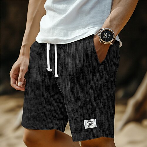 Per uomo Shorts Shorts di Lino Pantaloncini Estivi Shorts da Spiaggia Pantaloncini di seersucker Coulisse Elastico in vita Semplice Comodità Traspirante Lunghezza al ginocchio All'aperto Casuale