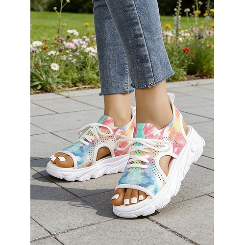 sandali con plateau e stampa floreale colorata da donna - sandali da ginnastica aperti con lacci per le uscite estive, le passeggiate e le vacanze informali