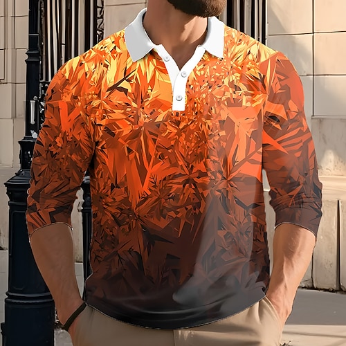Per uomo Grafico Geometrico Polo Manica Lunga Magliette polo Bavero Casual All'aperto Streetwear Athleisure Abbigliamento quotidiano Stampa 3D Bottoni Primavera Autunno Inverno Blu Arancione Blu