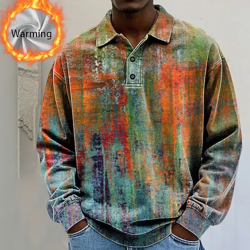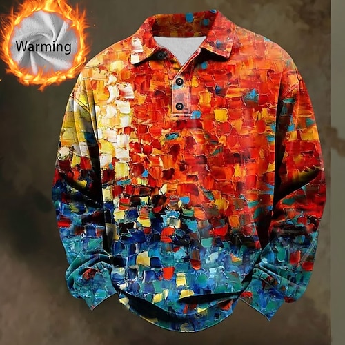 Per uomo Astratto Geometrico Polo Camicie termiche Manica Lunga Magliette polo Bavero Casual Athleisure Ferie Abbigliamento quotidiano Stampa 3D Autunno Inverno Blu Arcobaleno Multi Color