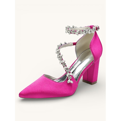 décolleté da sposa in raso da donna con cinturino alla caviglia in strass – scarpe da sposa e da damigella con punta a punta e tacco basso in vari colori