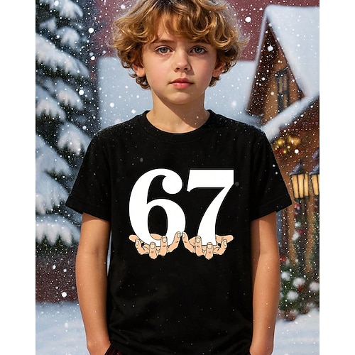 Cotone Bambini Ragazzi Nero Bianco Grafico Gergo divertente 67 Maglietta Blusa Girocollo Manica Corta All'aperto Abbigliamento Quotidiano Moda Streetwear Designer Stampa Estate