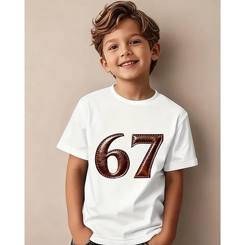 Cotone Bambini Ragazzi Nero Bianco Grafico Calcio Gergo divertente 67 Maglietta Blusa Girocollo Manica Corta All'aperto Abbigliamento Quotidiano Moda Streetwear Designer Stampa Estate