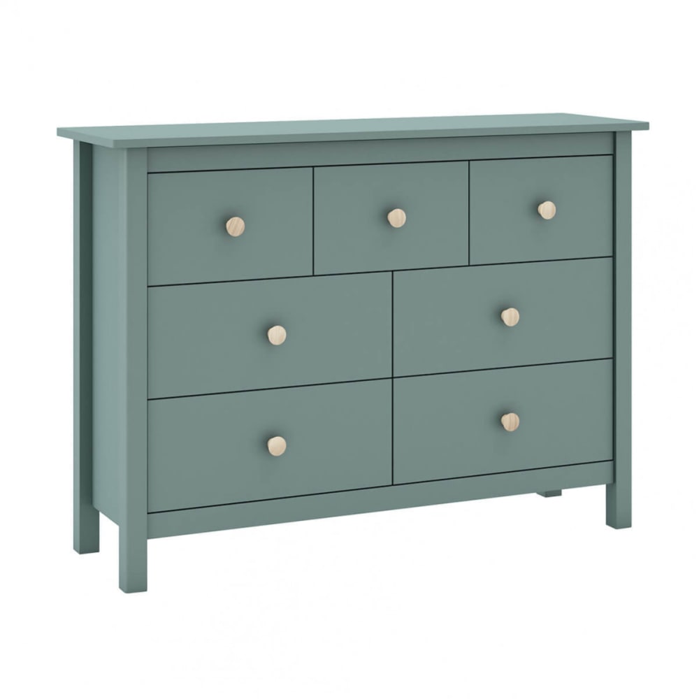 Commode 7 tiroirs en pin massif vert pétrole