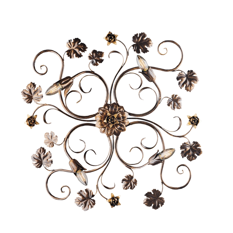 BeLight Iris - Deckenleuchte aus braun lackiertem Eisen mit antikem Golddekor, 4 Lichter, H.17 - Ø76 - BL169-PL4-BR