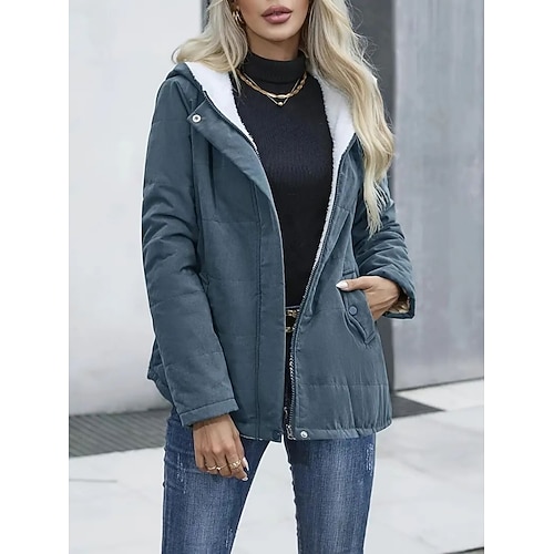 Per donna Parka Confortevole Traspirante Tasca Bottoni Collo in Pelliccia Casual Semplice Vacanza Streetwear Casuale Abbigliamento quotidiano Cerniera Regolare Con Cappuccio Vestibilità regolare