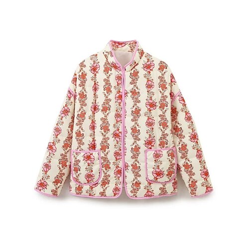 Per donna Cappotto Invernale Confortevole Traspirante Cerniera Tasca Casual Floreale Vacanza Streetwear Casuale Abbigliamento quotidiano Monopetto Regolare Collo alla coreana Vestibilità regolare