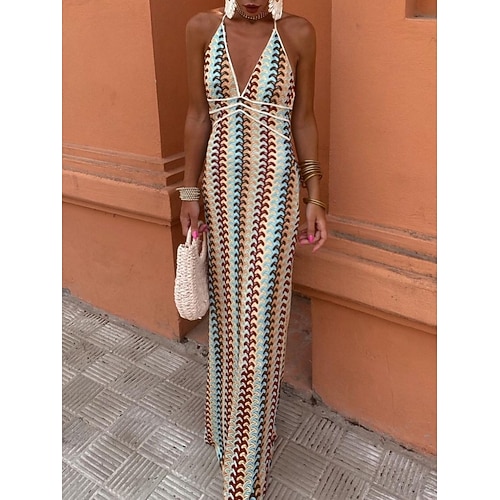 Per donna Abito maxi Tubino Abito Sottoveste Vacanza Casual All'aperto Uscire Vestibilità regolare Geometrico Senza Maniche All'americana Blu Arcobaleno Grigio Estate Primavera