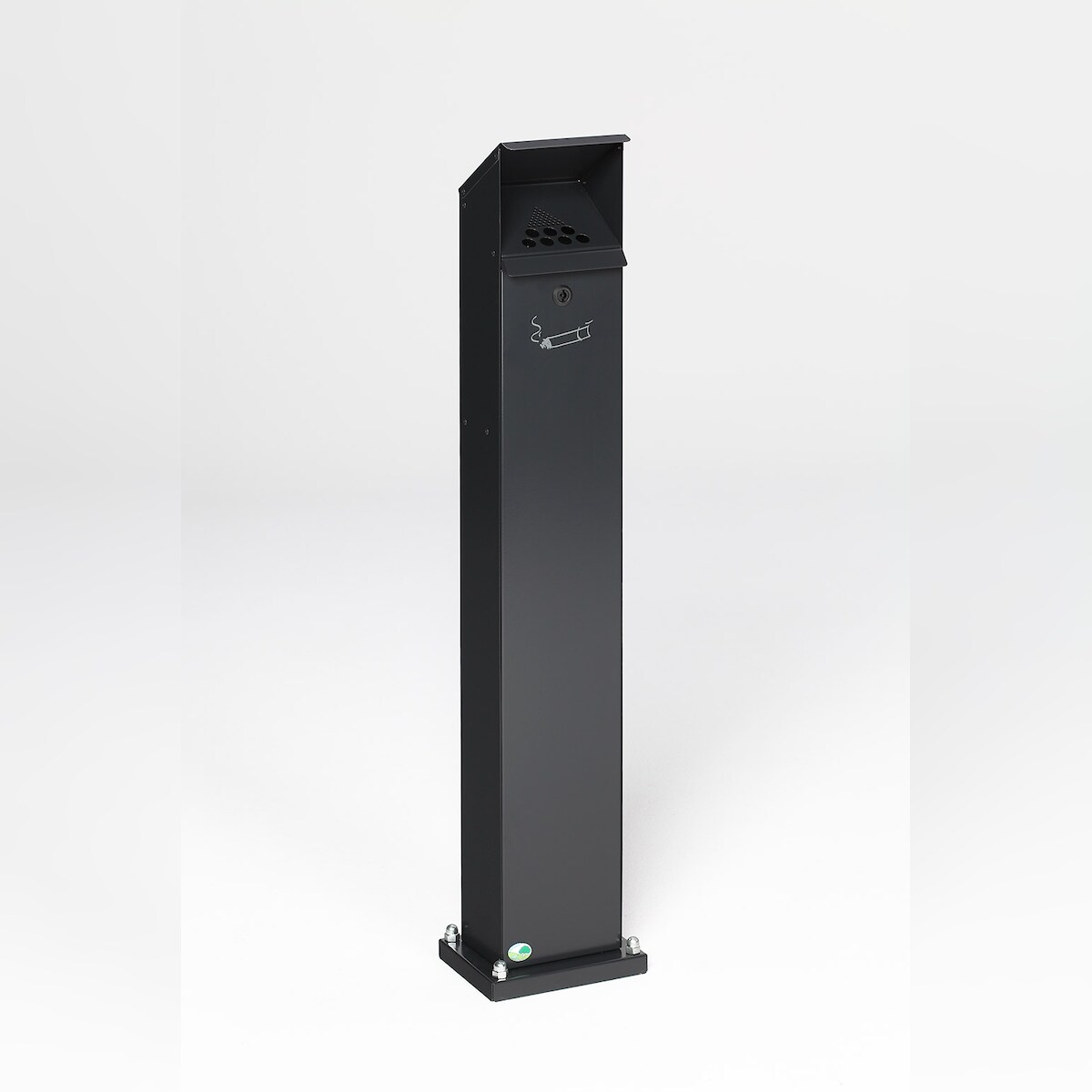 PROREGAL Robuster Ascher Standsäule mit Schloss und Bodenplatte | 2 Liter, HxBxT 115x18x15cm | Verzinkter Stahl | Anthrazit | Ascher Aschenbecher