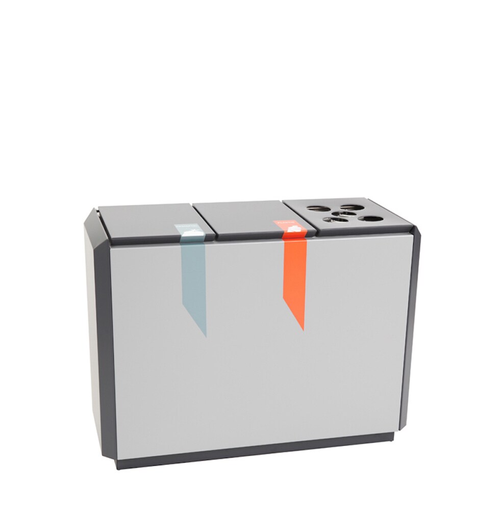 PROREGAL Feuerfester Wertstoffsammler RecycloStar 3 mit Bechersammler | 165 Liter, HxBxT 74,5x99,7x45,3cm | Aluminium | Anthrazit / Grau