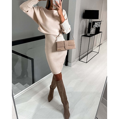 Per donna Insieme del vestito Abito Sottoveste Elegante Casual Semplice Design Abito Midi Manica Lunga Girocollo All'aperto Vacanza Marrone scuro Nero Beige Primavera Autunno Vestibilità regolare