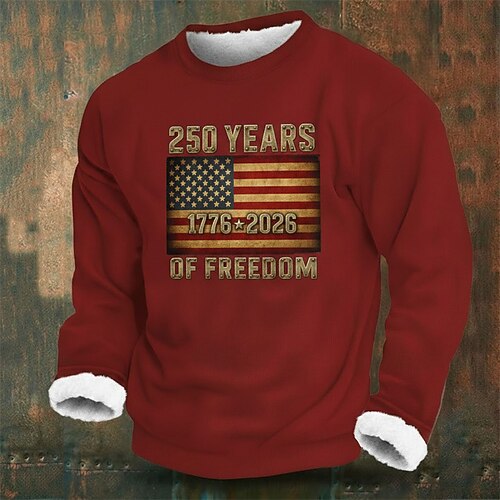 US America 250 Anniversario Felpa Fleece Maglietta Bandiera Americana US per Uomo Moda Quotidiana Semplice Casual Collo Alto Zip Outdoor Vacanza Regalo Uscita Blu Marrone Verde Militare Tasca