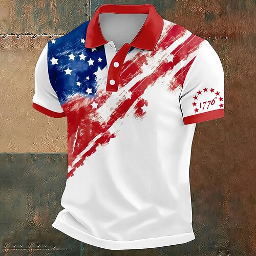 Giorno dell'Indipendenza Americana Per uomo Bandiera Americana Polo Manica Corta Magliette polo Camicie con Colletto Vintage Casual All'aperto Athleisure Bottoni Stampa 3D Estate Bianco Blu