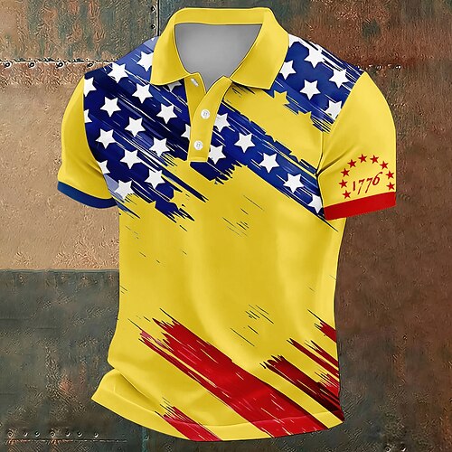 Giorno dell'Indipendenza Americana Per uomo Bandiera Americana Polo Manica Corta Magliette polo Bavero Casual Athleisure Abbigliamento quotidiano Abito da festa Stampa 3D Bottoni Estate Blu Nero