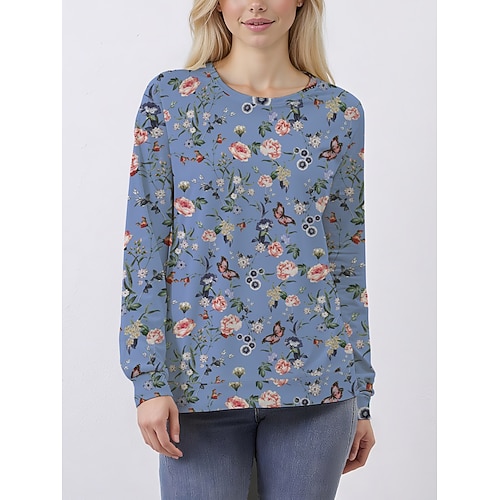 Per donna Felpa Pullover Felpe con cappuccio Floreale Grafico Classico Casual Stampa Manica Lunga Girocollo Top Regolari Casuale Ferie Stampato Blu Autunno Inverno