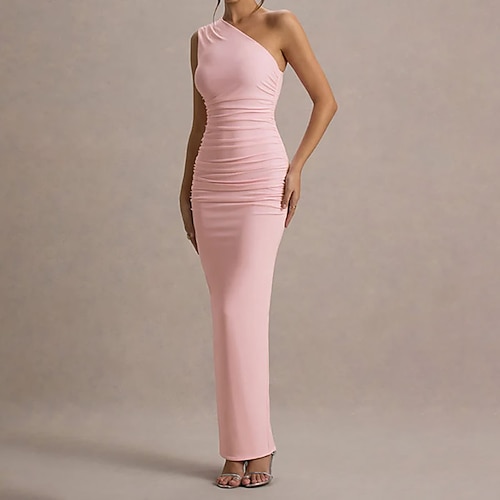 Per donna Abito Lungo Maxi Abito Vestito da Festa Abito da Cocktail Tubino Elegante Moda Moderno Festa serale Feste Cocktail party Vestibilità regolare Semplice Senza Maniche Monospalla Giallo Chiaro