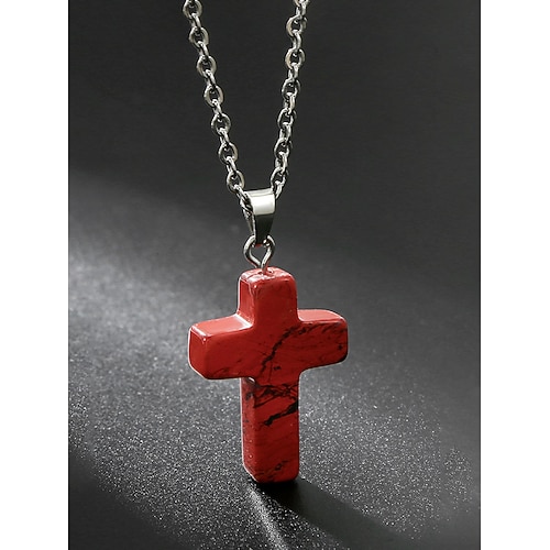 Collana con ciondolo a croce in pietra naturale natalizia da uomo, disponibile in più colori, design elegante e alla moda, perfetta come regalo per le feste
