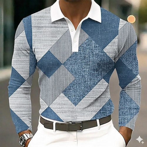 Per uomo Blocco di colori Geometrico Polo Manica Lunga Magliette polo Bavero Business Casual All'aperto Athleisure Abbigliamento quotidiano Stampa 3D Bottoni Primavera Autunno Blu Blu marino Viola