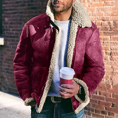 Per uomo Giacca di pelle sintetica Giacca in pile Giacca da motociclista Giacca da moto Giornaliero Da mare Antivento Tenere al caldo Tasche Vello Autunno inverno Liscio Di tendenza Classico Bavero