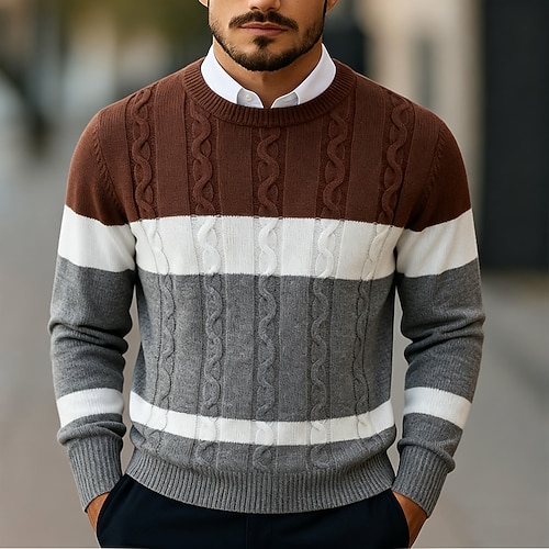 Per uomo Felpa Maglione elegante Maglione Maglione a maglia A Coste Treccia Maglia Top Regolari Blocco di colore Lavorato a maglia A righe Girocollo Vintage Moderno Casuale Abbigliamento quotidiano
