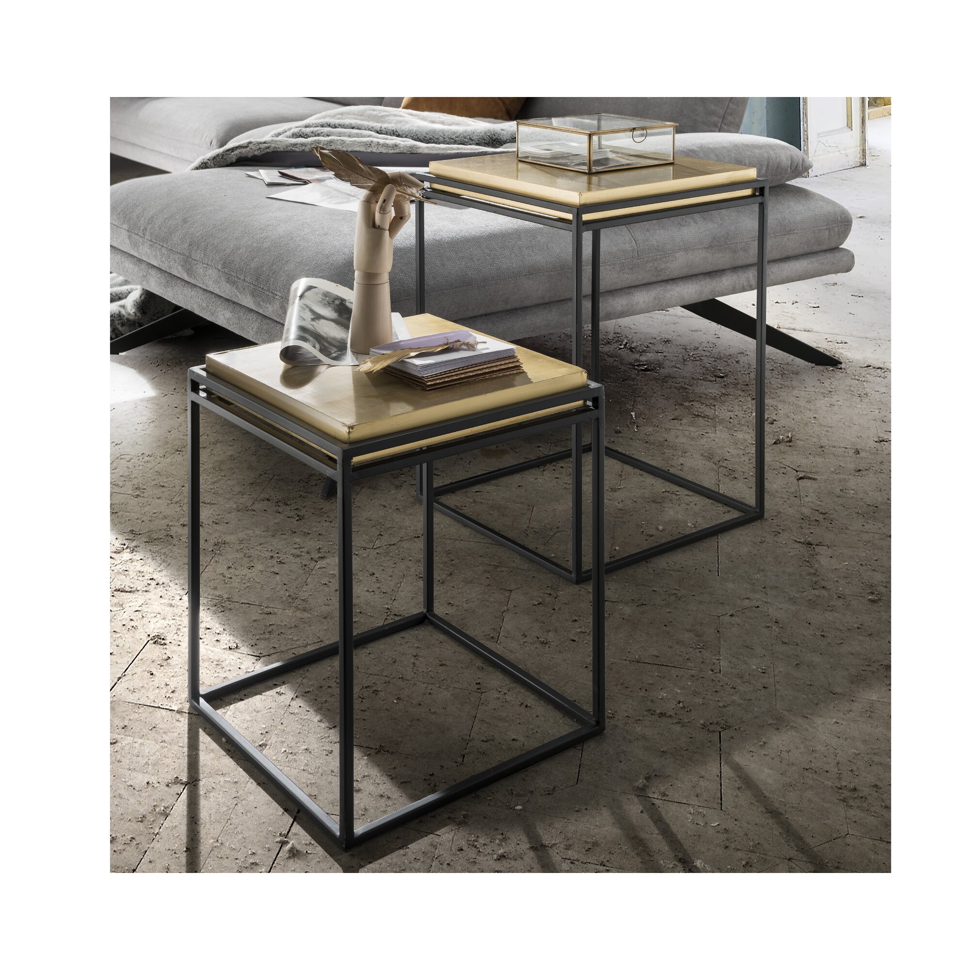 KADIMA DESIGN Satztisch CHUR Schwarz / Gold Beistelltisch MDF / Metall, Couchtisch Set aus 2 Tischen, Kleiner Wohnzimmertisch, Metalltisch mit Holzplatte,