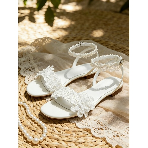sandali da sposa in pizzo bianco da donna con applicazioni floreali - ideali per matrimoni bohémien