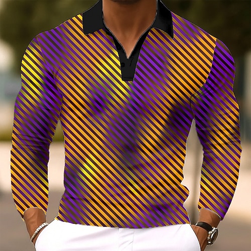 Per uomo A righe Polo da rugby Manica Lunga Magliette polo Camicie con Colletto Casual All'aperto Athleisure Stampa 3D Primavera Autunno Inverno Giallo Blu Verde