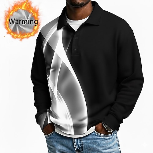 Per uomo Geometrico Linea Polo Camicie termiche Manica Lunga Magliette polo Bavero Casual Athleisure Ferie Abbigliamento quotidiano Stampa 3D Primavera Autunno Inverno Blu Bianco Rosso