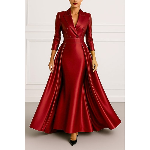 Per donna Abito da smoking Linea ad A Abito alto-basso Matrimonio Formale Ospite di nozze Raso Elasticizzato Elegante Manica 3/4 plissettata Lunghezza al pavimento Bavero a lancia Doppiopetto