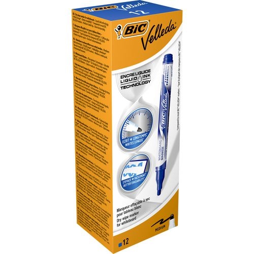 BIC Velleda Liquid Ink Non-permanent Whiteboard-Marker Blau Mittel Rundspitze 1 - 2,2 mm 12 Stück