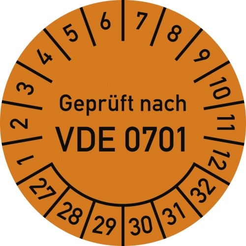 Dreifke® Prüfplakette Geprüft nach VDE 0701, 2027-2032, Dokumentenf., Ø 30mm, 10 Stück/Bogen