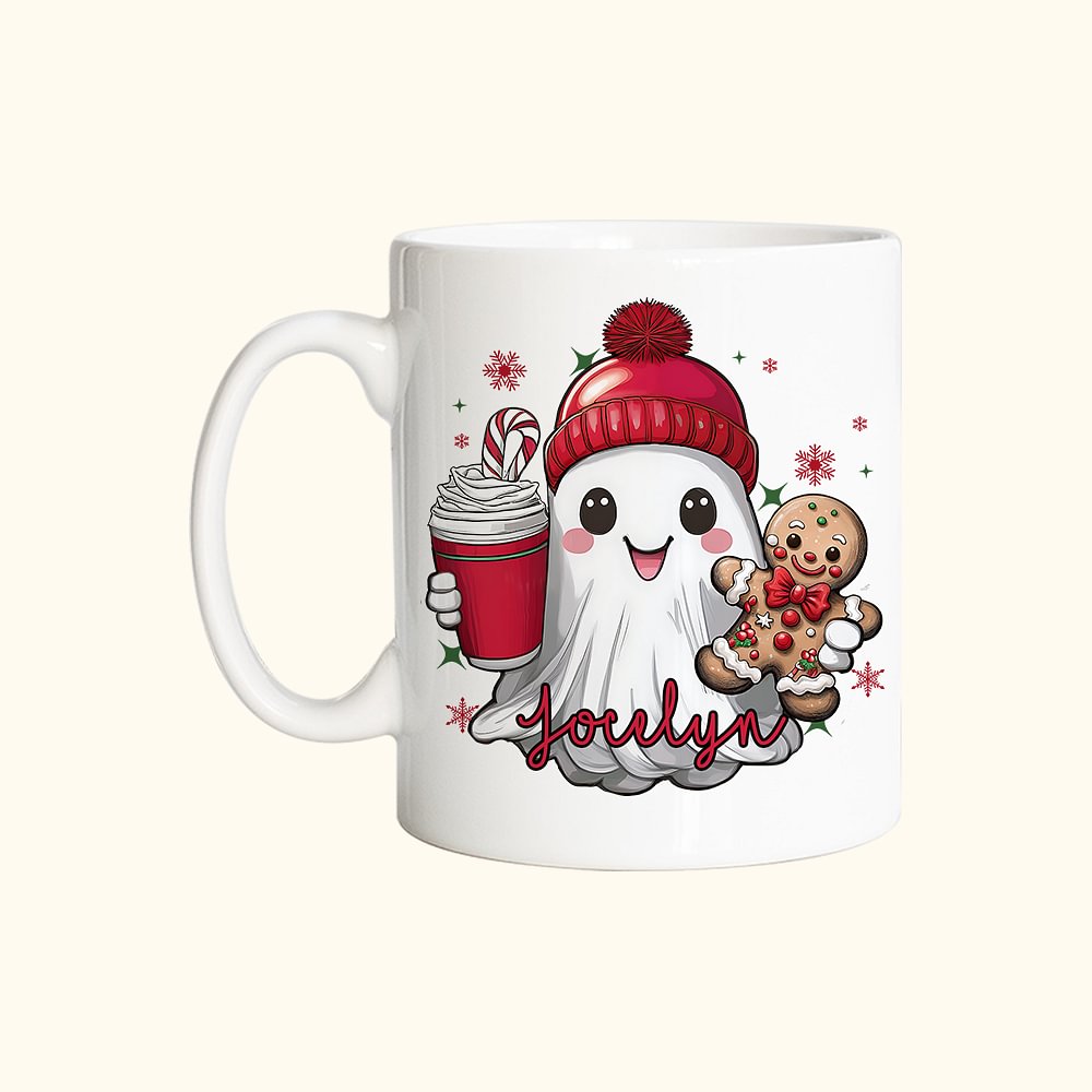 Personalizzato Carino Beanie Ghost Gingerbread Candy Cane 11 oz 15 oz Ceramica Mug con nome Compleanno regalo di Natale per la famiglia amico